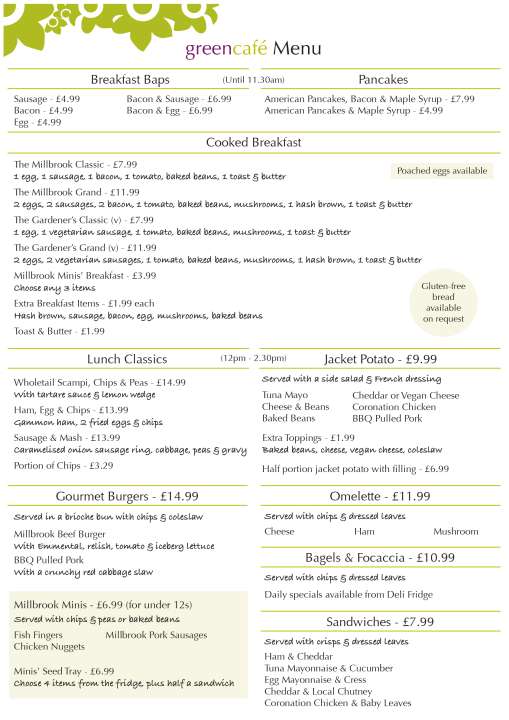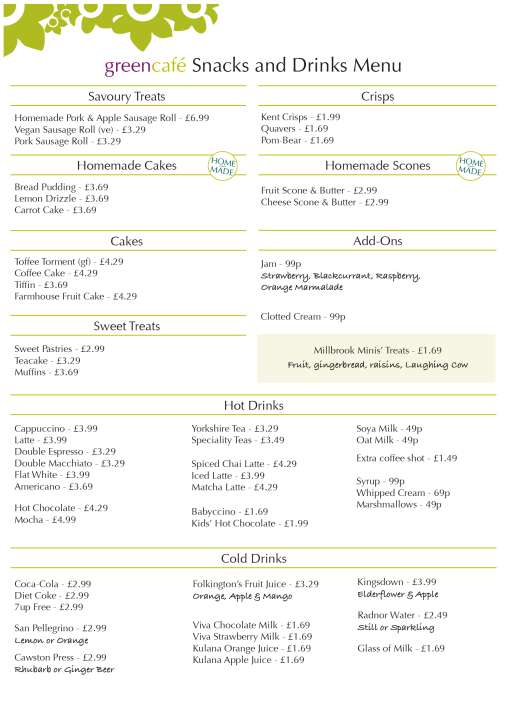 The popular greencafé at Millbrook, Staplehurst, is the perfect place to enjoy a hot drink or snack whilst shopping, or treat yourself to a delicious breakfast or lunch. Plenty of space and a large decked outdoor seating area for when the weather is fine, there is also easy access for both wheelchairs and pushchairs, and highchairs are available for our younger customers.