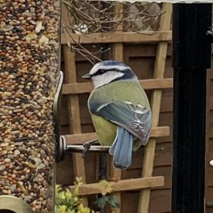The birds continue to love the feeders. The Blue Tits & Great Tits feed on a daily basis, especially in the mornings when it is quieter. We’ve also have had starlings collecting in a nearby oak tree then suddenly flock down on mass to the feeders. This drives our cats, safely behind the patio doors, into a frenzy of trying to chatter to them.