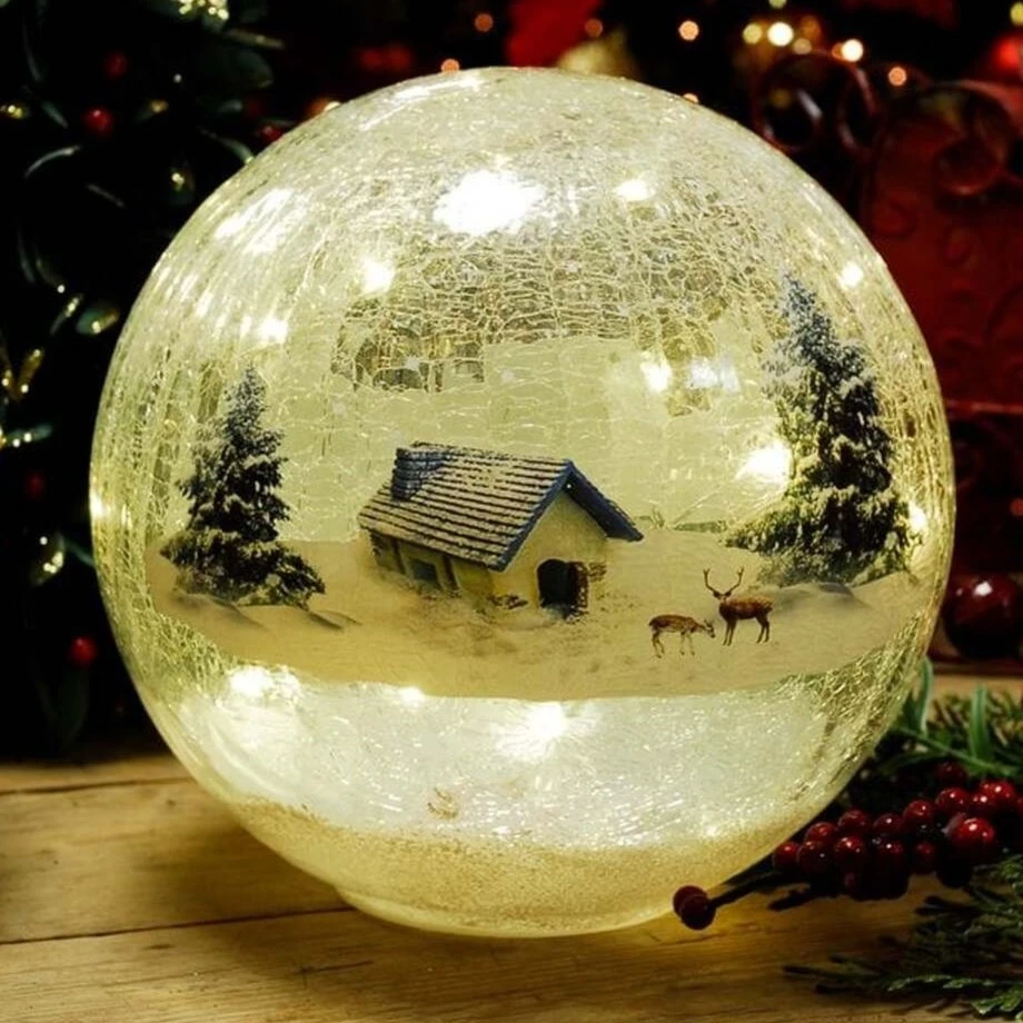 Brighten up your home this Christmas with this festive light-up crackle effect glass ball decoration. Ideal for anywhere around your home - on a mantle piece, windowsill or table top display.
