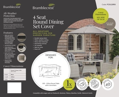 Are you searching for 4-Seat Round Dining Set Cover Khaki? You've come to the right place! 4-Seat Round Dining Set Cover Khaki from Bramblecrest is available in our online shop or at our garden centers in Staplehurst and Gravesend. The best part is that we offer it to you at a great price of 99.99!