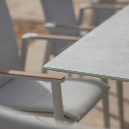 The Sofia range adds a fresh and modern take to your outdoor space, combining contemporary style with everyday practicality. Lightweight aluminium frames ensure strength and durability, while Deluxe padded chairs add extra relaxation. Sleek ceramic glass table tops complete the look with a stylish, low-maintenance finish.