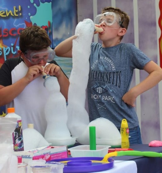 Discover what bubbles are made of, learn the secrets to making huge bubbles and see how you can create thousands of tiny ones! The excitement builds to a foaming chemical reaction finale that will leave everyone bubbling with wonder. Plus everyone gets the chance to make a fizzing bubbling chemical reaction.